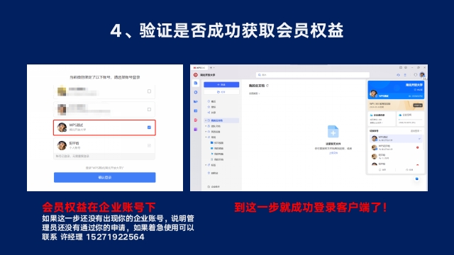 微信登录WPS,出现“湖北开放大学”字样即可使用企业会员权益。